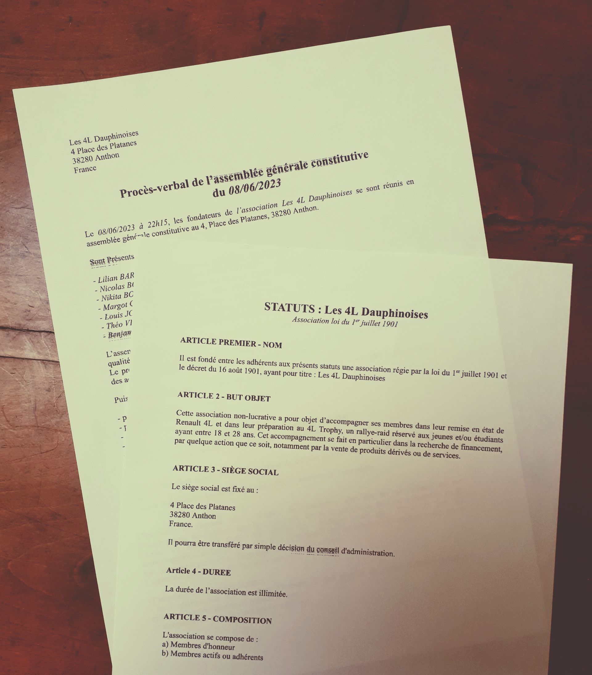 Pour nous retrouver une énième fois autour de ce nouveau projet, nous avons créé en juin 2023 Les 4L Dauphinoises, une association loi 1901 à but non-lucratif.