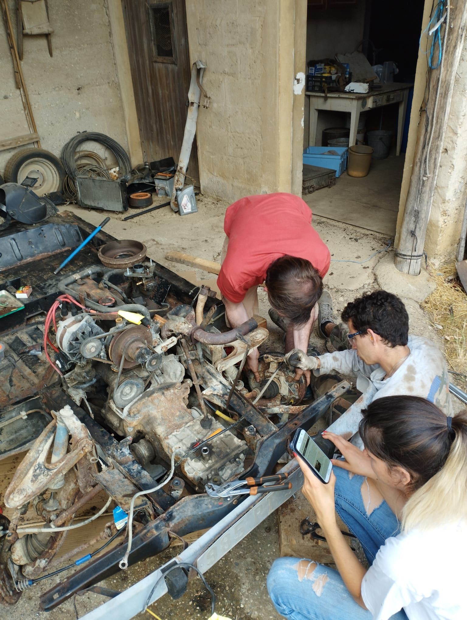 Nous organisons des sessions collectives pour réparer ensemble les 4L des membres de l'association. Apprendre à meuler, à souder, ou à décabosser, être créatifs et entreprenant pour proposer des solutions à notre échelle et avec les moyens du bord… bref, nos temps d'échanges sont toujours riches et formateurs !